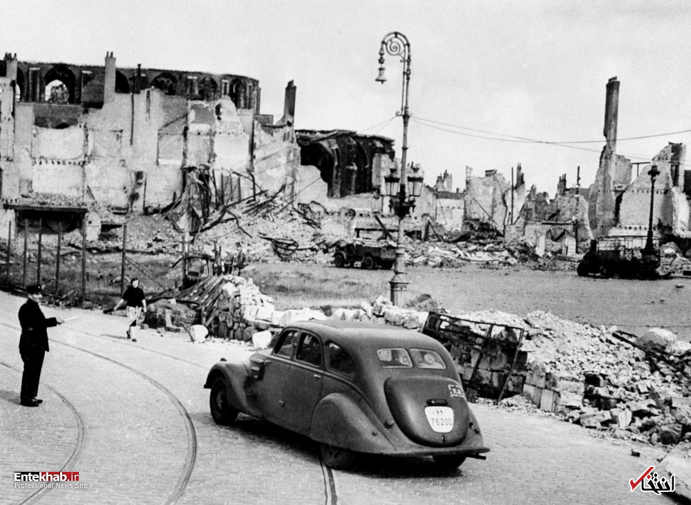 9 فوریه 1941 : ایست و بازرسی پلیس در ورودی شهر دانکرک فرانسه که توسط آلمانی ها بمباران شده است