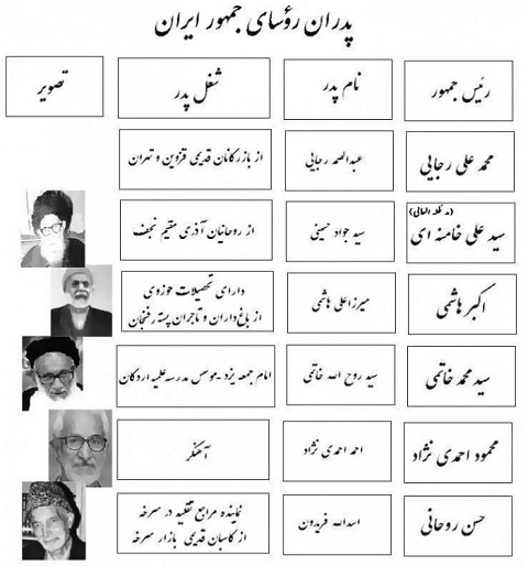 شعار سال : در تصویر زیر، نام، شغل و تصویر پدران روسای جمهور را مشاهده می نمائید.