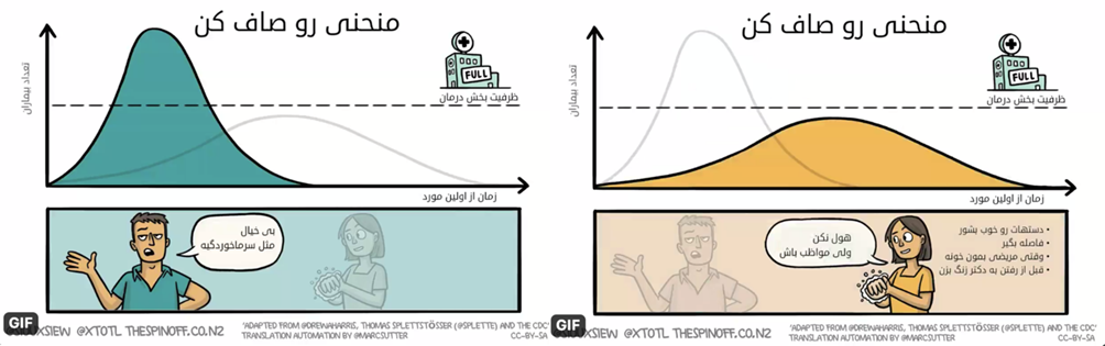 عطا کالیراد، پژوهشگر زیستشناسی تکاملی، پژوهشگاه دانشهای بنیادی، در این رابطه به خبرآنلاین میگوید: «اگر نمودار صافتر بشود، بیماری برای مدت طولانی در کشور شما حضور دارد و به همین دلیل معمولا ۹۰ درصد ظرفیت سیستم بهداشتی یک کشور پر میشود. اما اگر در یک ماه این نمودار را طی کنید سیستم درمانی به مشکل میخورد، به هرحال تجهیزاتی مثل تعداد دستگاه های تنفسی در هر کشوری محدود است. حتی ممکن است سیستم بهداشتی ایالات متحده آمریکا هم در چنین شرایطی به مشکل بخورد.»