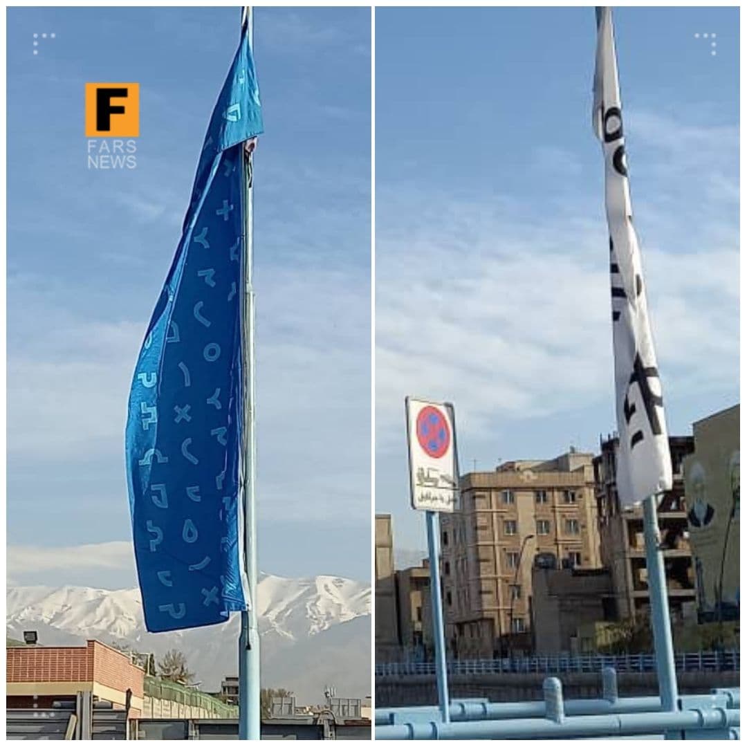 شعار سال: نصب پرچمهایی با طرحهای عجیب در اتوبان امام علی(ع) تهران