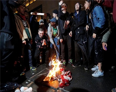 معترضان ترامپ در برخی شهرهای آمریکا پرچم این کشور را به آتش کشیدهاند.
