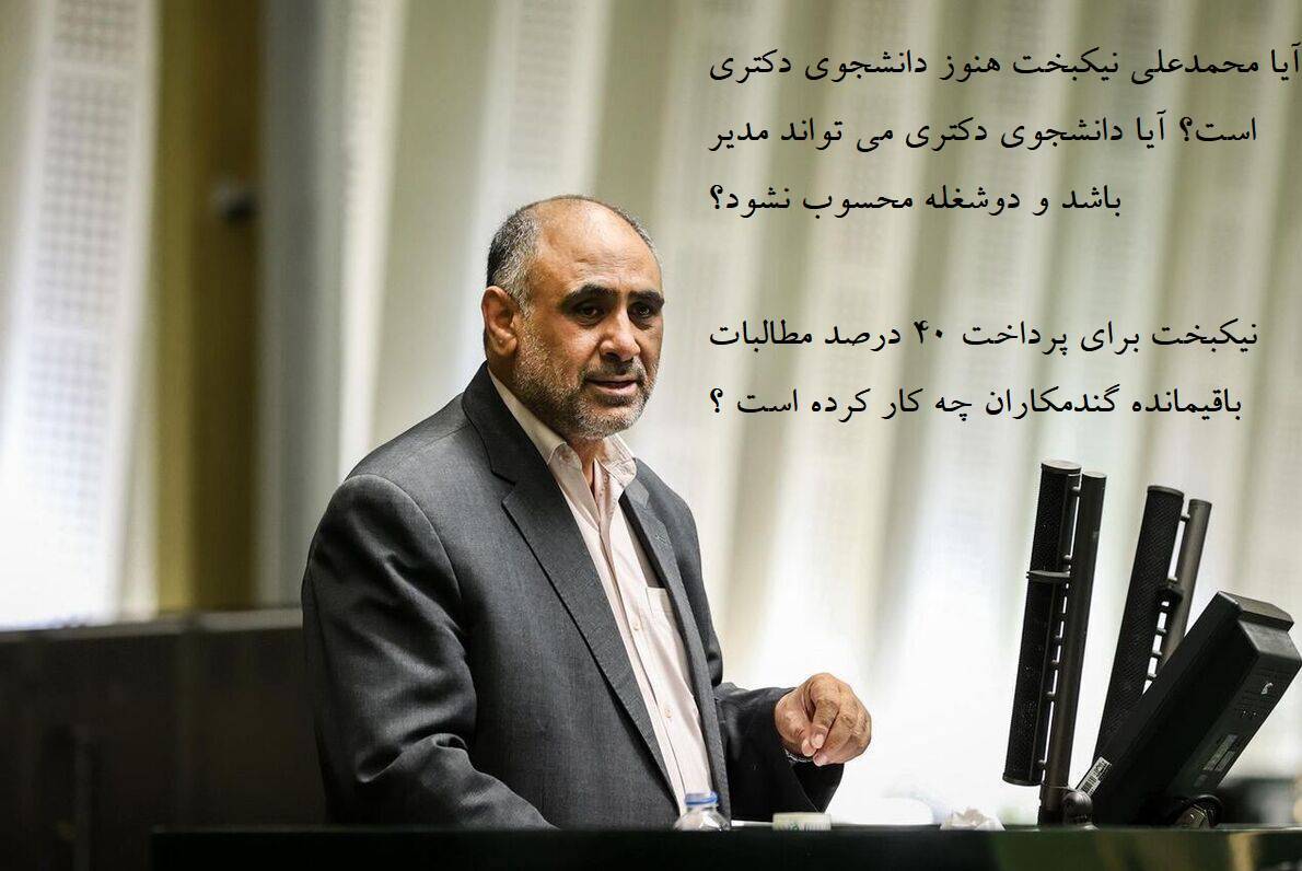 سوال اینجاست که محمدعلی نیکبخت وزیر جهادکشاورزی با وجود اطلاع و اشرافیت کافی به وجود این مشکل در چند سال اخیر، چه اقداماتی برای کاهش و رفع آن نموده است؟ چرا دولت در صورت تاخیر در پرداخت، مبلغی اضافی را در قالب سود عدم نفع به کشاورزان پرداخت نمیکند؟ چرا وزارت جهادکشاورزی در بیان مشکل کشاورزان و حتی دلگرمی و دلداری دادن به آنها روزه سکوت گرفته است؟