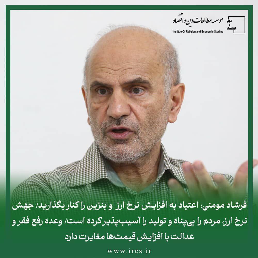 مومنی حامیان این طرح را مخاطب قرار داد و پرسید پرسید: شما اصلا متوجه میشوید مکانیزم بازار یعنی چه؟ واقعاً شما متوجه نیستید که با این حرفهای مبتذل و بیپایه، دارید چاقوی چه کسانی را تیز میکنید؟ شما واقعا درک نمیکنید که چه مسائلی را، در اثر برجستهسازی دروغین و مجعول نرخ ارز، از دستور کار حذف میکنید؟ چطور میشود که برای شما، تکنرخی کردن ارز در چارچوب این مناسبات فاسد و رانتی، یک ضرورت اجتنابناپذیر تلقی میشود، اما رفع فقر غذایی شدید، نابرابریهای فاجعهساز، وابستگیهای ذلتآور به دنیای خارج و سقوط وحشتناک بنیه تولید ملی، چرا اینها را ضرورت اجتنابناپذیر تلقی نمیکنید؟