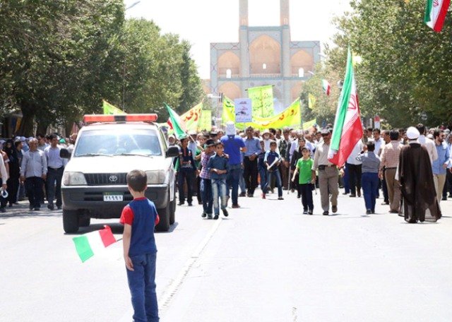 راهپیمایی روز قدس امروز در بیش از ۷۰ نقطه از استان یزد باشکوه هرچه تمامتر برگزار شد و مردم استان یزد در اقصی نقاط این استان یکپارچه شعار «مرگ بر اسرائیل» سر دادند و پرچم این رژیم غاصب را در همه نقاط استان به آتش کشیدند.