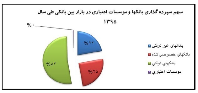 گزارش بانک مرکزی نشان می دهد که در سال گذشته سهم بانكهاي دولتي 25 و سهم بانكهاي خصوصي از بازار بین بانکی 75 درصد بوده است.