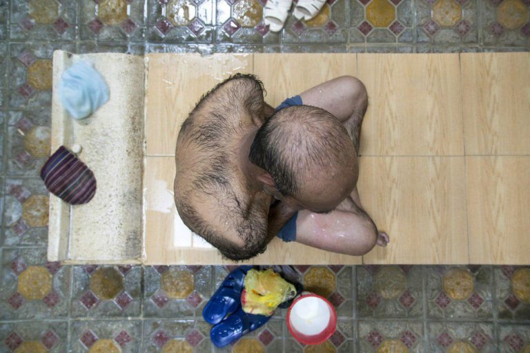 در حال و احوالِ آدمهایی که سوژهی این عکسها هستند، همان حسی جریان دارد که امروزه حمامهای عمومی پیدا کردهاند. در انتخاب هر سوژه و قاب دقتی به خرج داده شده که انگار همه یک حال مشترک دارند. در همهی آدمها، نوعی توجهِ محض به انجام آداب و مناسکِ حمامها وجود دارد. جهانِ هر آدم به اندازهی حمامی که درش هست، کوچک شده؛ همانطور که جهانِ حمامهای عمومی مدام در حال آب رفتن است. این یگانگی و یککاسهگی در صورتِ حمام و حمامیها به چشم میخورد. شاید این رخوت و بیاعتناییِ چهرهها، نتیجهی بیتوجهیِ محیط پیرامونی به حمام و حمامیها است.